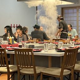 One of our favorite places to celebrate a special occasion or bring our out of town guests! Restaurant is very busy so reservations (7pm) are a must, especially with a big party of 9. We wanted to do teppanyaki but they had only limited time frames that didn't work with our schedule. next time! So busy both parking lots were full! Had to find street parking. Food is always delicious! Big huge fish tank! Full alcohol bar and sushi bar.
